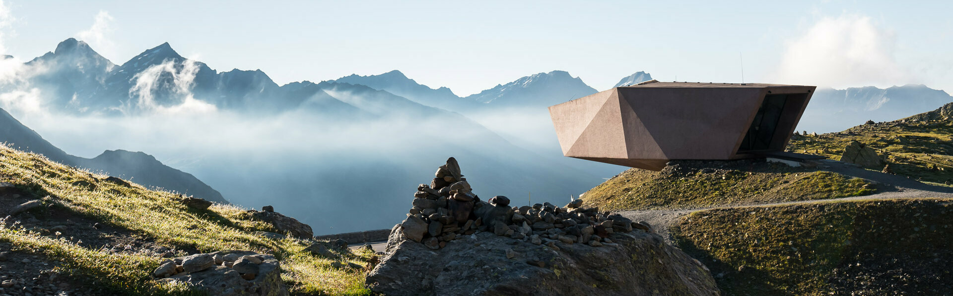 Sechs Architektur-Skulpturen informieren über Natur, Geschichte, Kultur und Wirtschaft der Region und erweitern den Horizont. Erkunde die Stationen und mach’ die Timmelsjoch Erfahrung.