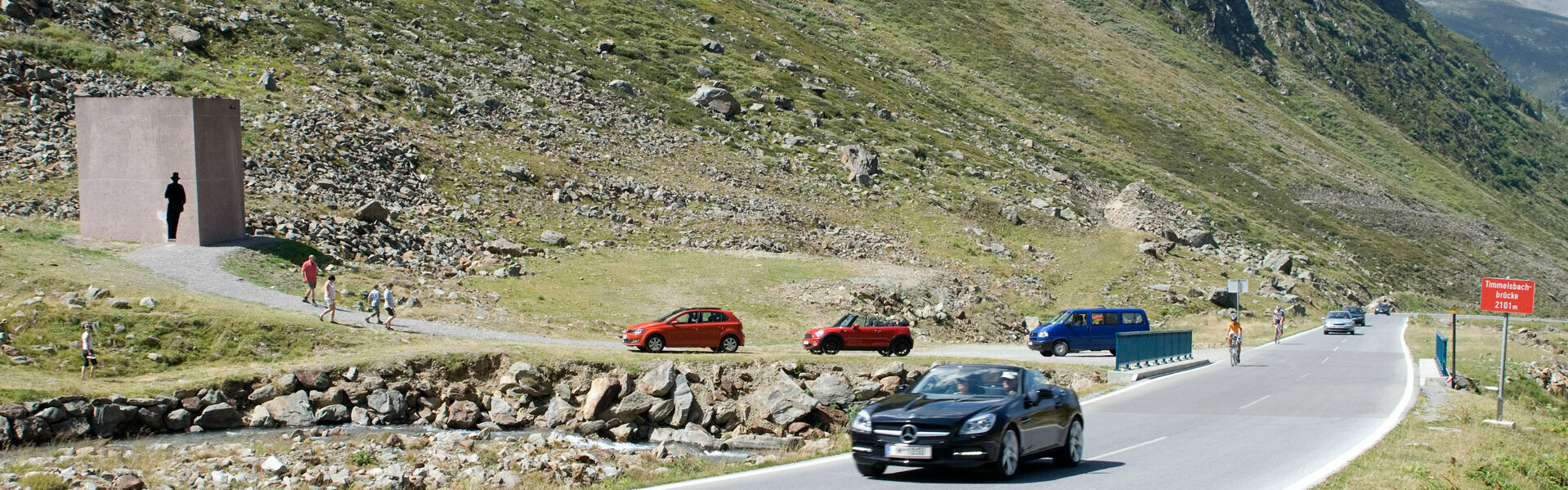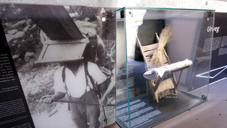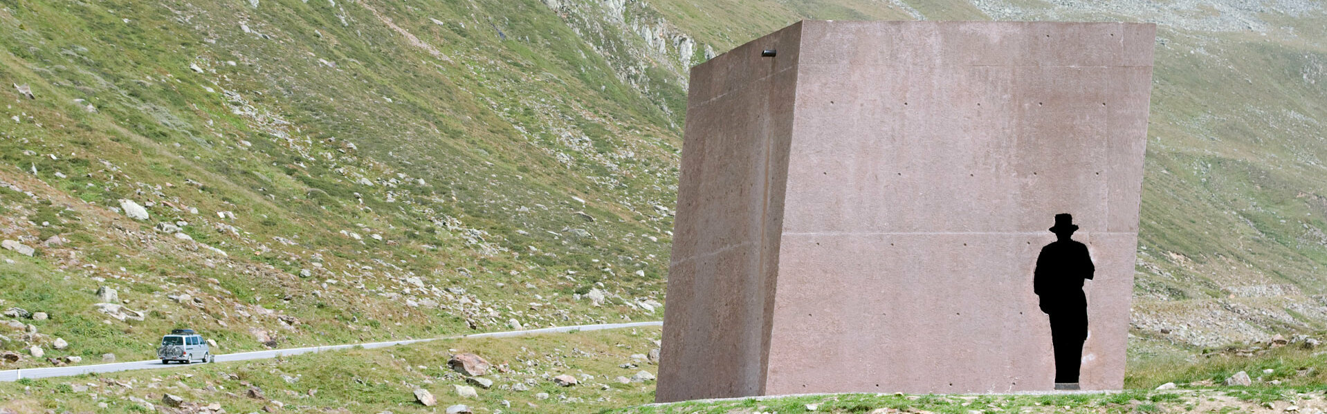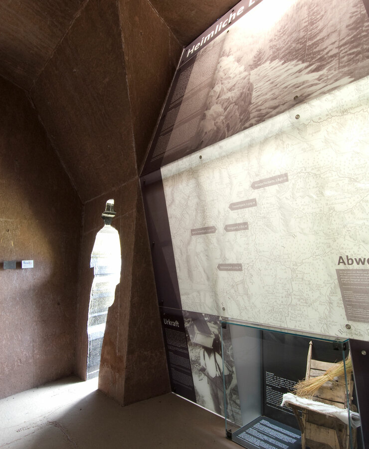 Dort, wo die Straße den Urweg von Zwieselstein nach Moos im Passeier kreuzt, entsteht ein begehbarer Würfel. Er entführt in die abenteuerliche Welt des Schmuggels über das Timmelsjoch.