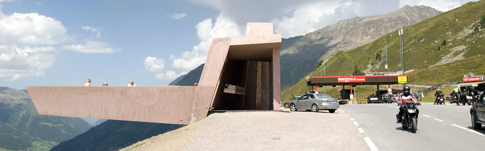 An der Mautstation ergibt sich ein einmaliges Panorama mit dem hinteren Ötztal und seinen beeindruckenden 3000er-Gipfeln. Ein Steg, der ganz neue, atemberaubende Ausblicke eröffnet, informiert über die Landschaft und ihre Eigenheiten.